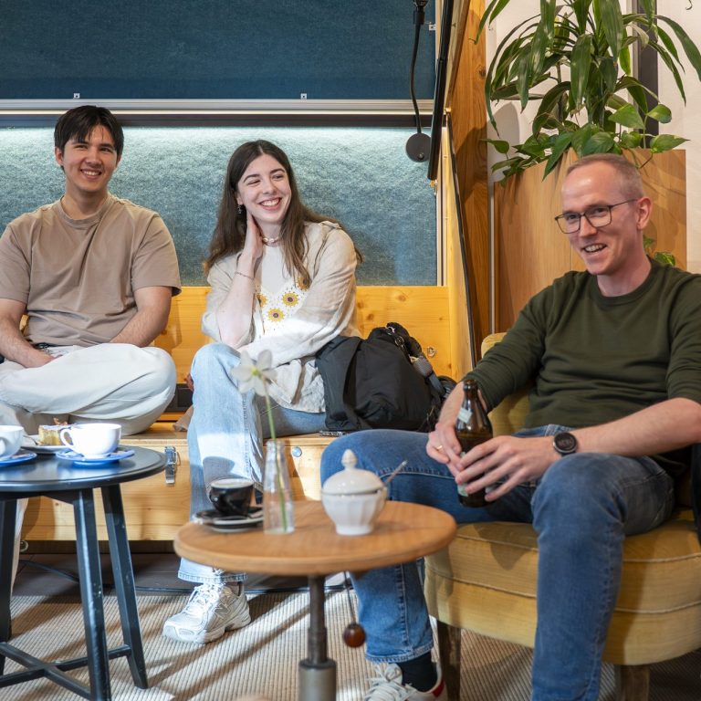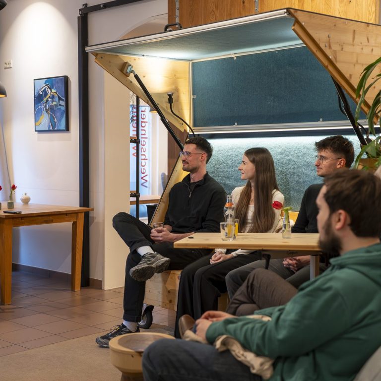 Im KI-Café entwickeln Studierende in lockerer Atmosphäre Umsetzungsvorschläge für Aufgabenstellungen in Unternehmen. Es entsteht ein Diskurs zu Möglichkeiten und Grenzen des Einsatzes von KI in Unternehmen und Institutionen. Ganz nebenbei entstehen Kontakte zwischen KI-begeisterten Studierenden und Unternehmen.